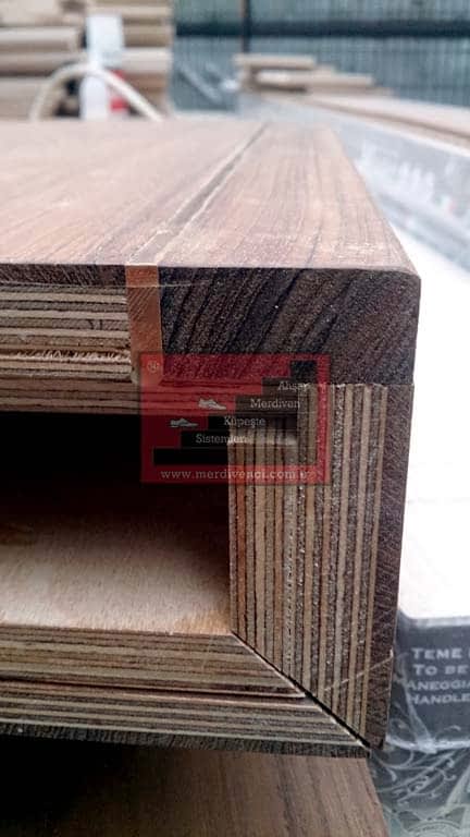 Lamine parke merdivenler için söylenebilecek en önemli husus, aynı malzemeden yapılmış olmalarından dolayı zeminle merdiven arasında gerek doku gerekse renk bakımından bir fark oluşmamasıdır. Lamine parke merdivenler üretilirken genellikle mdf üzerine preslenmektedir ve cila gerektirmemektedir. Lamine parkeden üretilen basamakların yüzeylerinde görünen kısımlara yine lamine parke cinsi ağaçtan çıta kullanılarak birleştirme işlemi yapılmaktadır. İsteğe bağlı olarak bu modellerin basamaklarda farklı şekillerde led aydınlatma kullanılarak daha fazla modernleştirilmesi olanağı da bulunmaktadır. Lamine parke merdivenlerin en önemli özelliklerinden biri 2.sistre ile on beş yılı bulan bir ömre sahip olmasıdır.
