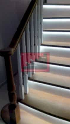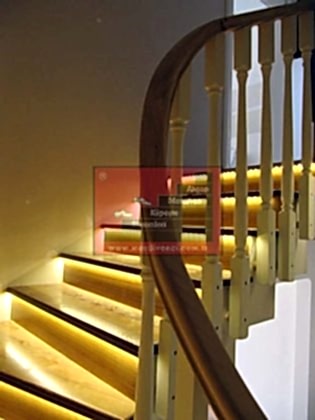 İki duvar arası merdiveni duvara monte edilen paslanmaz malzeme bir küpeşte ile destekleyerek led aydınlatmanın etkisini artırmak da firmamız tarafından gerçekleştirilen uygulamalar arasında yer almaktadır.