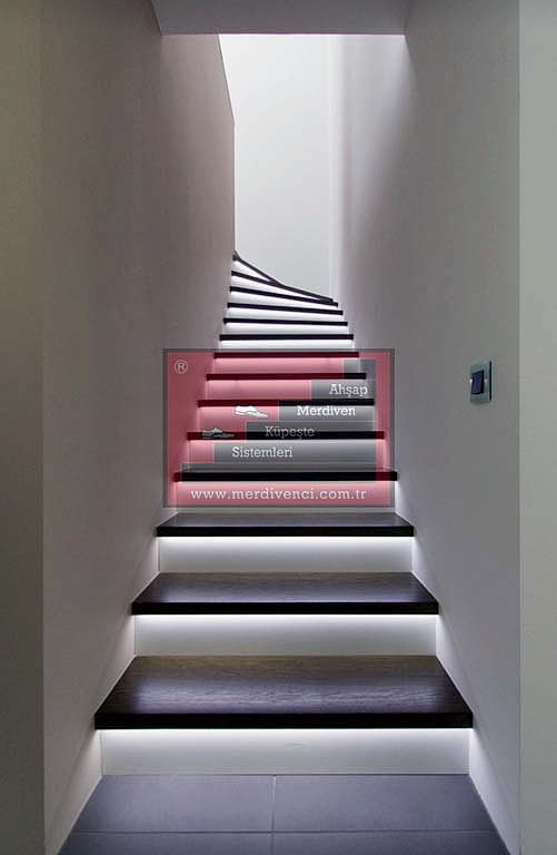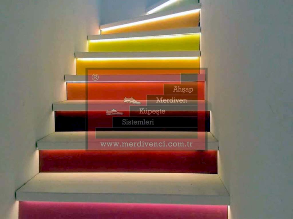 Led aydınlatma, basamakların belirli bir bölümünde noktasal olarak kullanılabileceği gibi basamağın tümünde çizgi şeklinde de yapılabilmektedir.