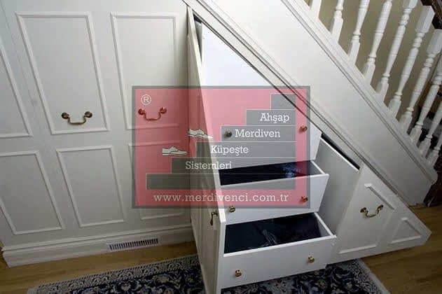 Bu sayede müşterilerimize en kullanışlı çözümleri ulaştırabilmekte, evlerinin iç hacimlerini en başarılı şekilde genişletirken yine evin içerisinden merdiven ile katlar arası geçişin sağlanabilmesine olanak tanımaktayız. Gerçekleştirmekte olduğumuz projelerin arasında merdiven altı dolaplar bulunmaktadır. Bu ürünlerimiz özellikle son zamanlarda en sık tercih edilen ürünlerimiz arasında yerini almayı başarmıştır. Merdivenler genellikle evin iç hacmini daralttığı için merdiven altı dolaplar büyük bir ilgi görmektedir. Bu dolaplar sayesinde bireyler çoğu zaman boş duran ve çirkin bir görüntü oluşturan merdiven altlarını efektif bir şekilde kullanabilme imkanına kavuşmuşlardır.